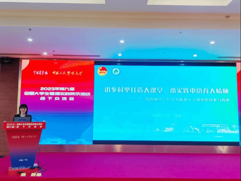 11月21日,第九届全国大学生暑期实践展示活动线下交流会举办,来自全国的近百所高校代表齐聚一堂,我校作为全国暑期实践大学TOP10获奖高校(全国仅10所),作题为《小乡村打造大课堂,小实践培育大情怀——bevictor伟德官网“三化四融合”社会实践育人大课堂的探索与实践》现场分享(全国共4所高校分享)。