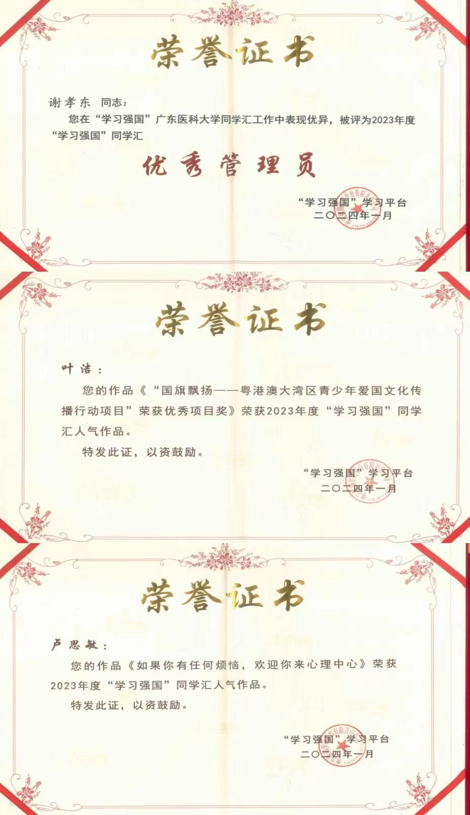 近日,“学习强国”全国平台从2023年同学汇发布的内容中,精选出200条作品,根据投票结果评选出人气作品Top100。我校药学院叶洁同学及公共卫生学院卢思敏同学分别获2023年度同学汇人气作品奖,机关党委谢孝东老师被评为“优秀管理员”。其中,“优秀管理员”在全国高校中仅有80人。