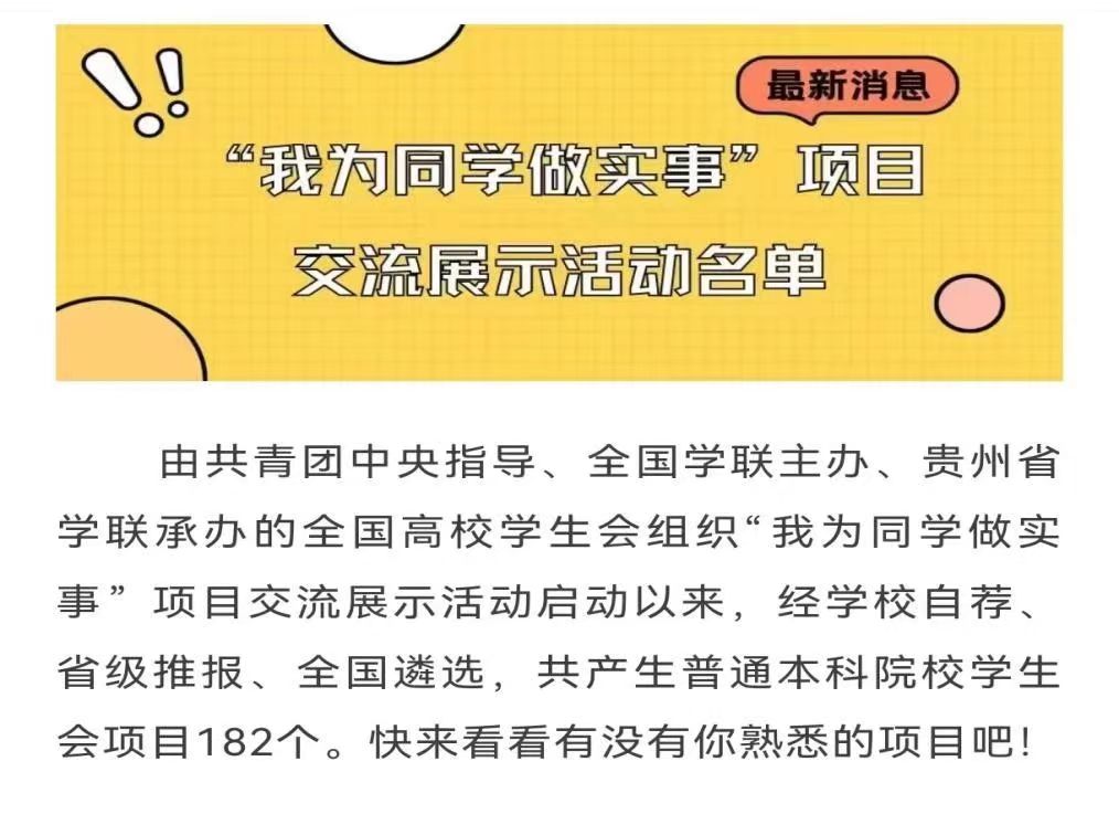 1月27日,全国学联公布了全国高校学生会组织“我为同学做实事”项目交流展示活动名单,我校“一元钱”基金和校园综合服务平台“好帮码”两个项目入选。