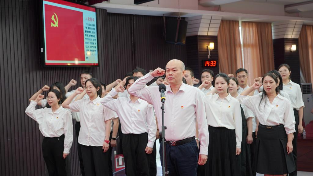 岁月无声,誓言永恒。入党誓词是党对党员要求的精华和浓缩,也是党员对党的庄严承诺和责任担当。在学校党委书记校长卢景辉的带领下,学校新党员面向鲜艳的党旗庄严宣誓,与会党员们也一同重温了入党誓词,表达了每一名党员对党的赤诚忠心和为共产主义事业奋斗终身的坚定决心。