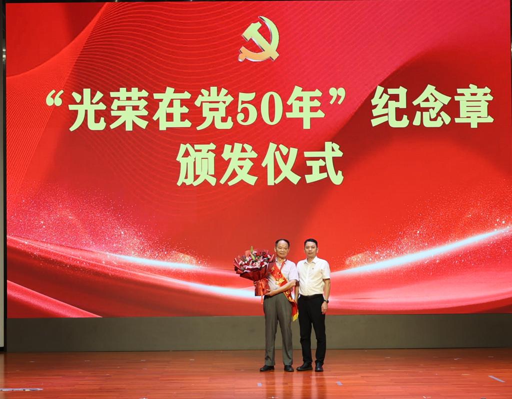 50年党龄、50年荣光。会上,为老党员颁发了“光荣在党50年”纪念章。“光荣在党50年”纪念章的颁发,既是对老党员始终对党忠诚为党奉献的充分肯定,也是对新一代党员勇挑重担、奋勇前行的最好指引。
