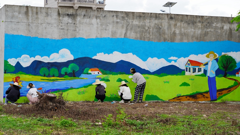 在湛江市遂溪县草潭镇新港村,卢景辉一行慰问了正在进行墙体彩绘的绘乡绘色突击队,他们致力于将青春的笔触留在乡村,为乡村注入蓬勃的朝气。县领导闻及队员们都是医学生时表示惊奇,卢景辉自豪地解释道,对医学生来讲,手绘解剖图是必备技能,广东医的学生多才多艺,动手能力强,在墙绘上体现得淋漓尽致。“看着孩子们在我们绘制的壁画前嬉戏,老人们坐在画旁的树荫下谈笑风生,我深刻感受到了艺术的力量。它能拉近人与人之间的距离,增强乡村的凝聚力。我们的墙绘得到了村民们和卢景辉书记校长的认可,这种成就感是无法用言语表达的。”“绘乡绘色”百千万工程突击队队长谭雅萌同学表示。