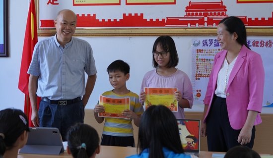 “规航”志愿服务突击队的队员们在遂溪县界炮镇为青少年做职业生涯规划意识的启蒙和国家相关资助政策的宣讲,特别是针对孤儿、事实无人抚养儿童、低保及特困儿童、低保边缘儿童等特殊群体,积极学习与梦想有关的专业认识提升职业能力,鼓励更多孩子们寻梦、追梦、起航。“我想当科学家,我想成为一名医生、我想成为一名教师”,这是孩子们认真学习的动力。队员们邀请卢景辉、黄少娥为优秀学生颁奖,他们与小朋友们亲切交流,鼓励他们认真学习、继续努力,将来成为对社会有用的人。