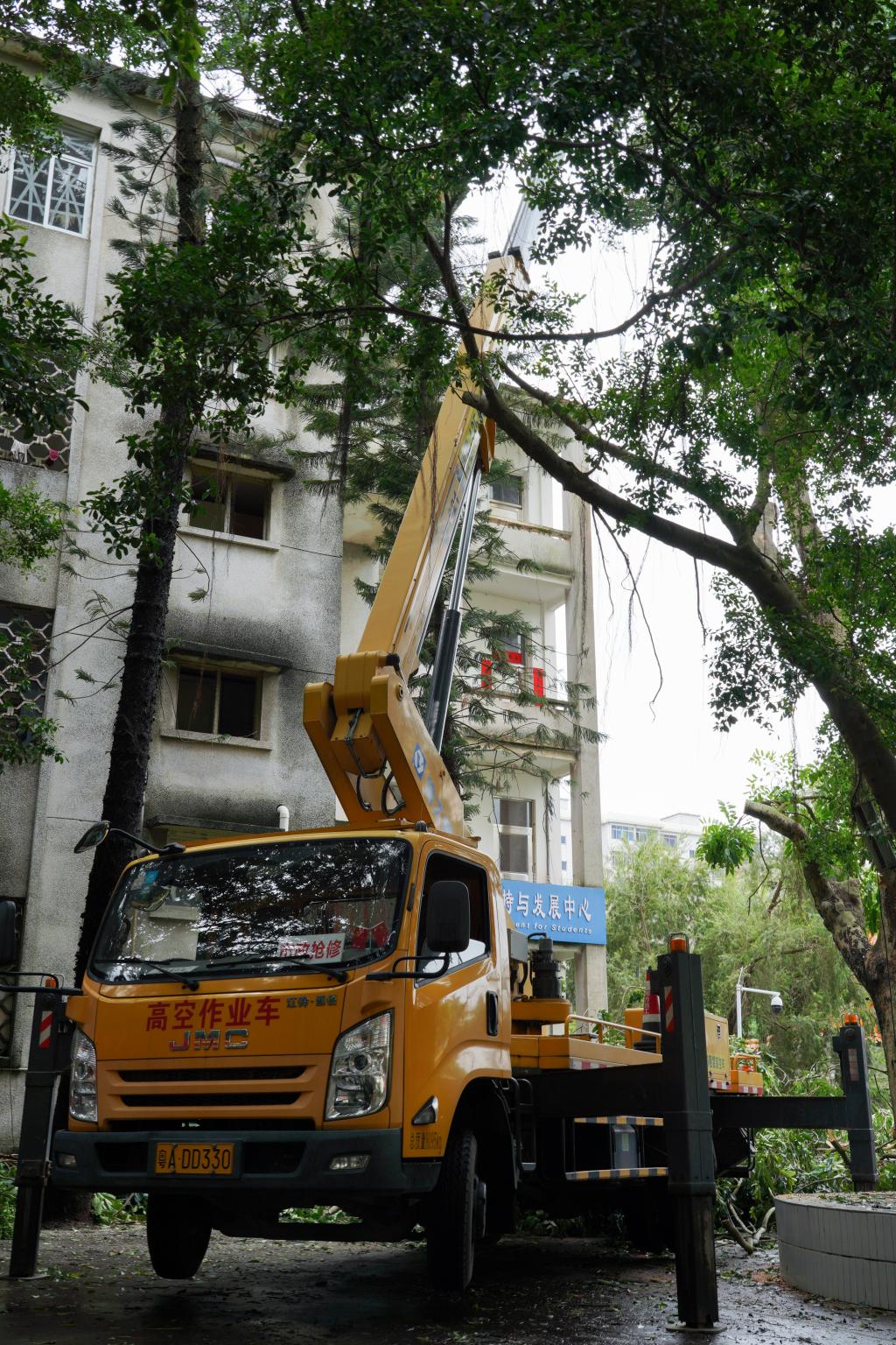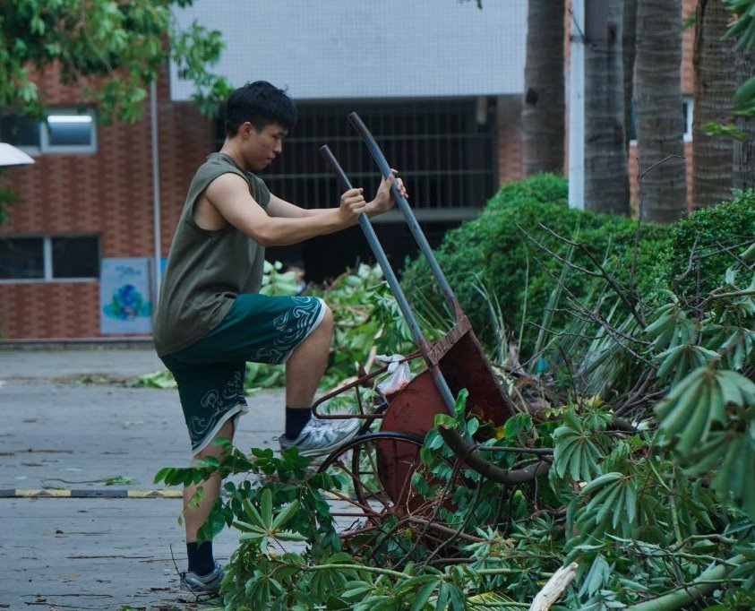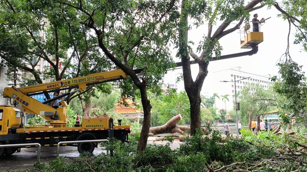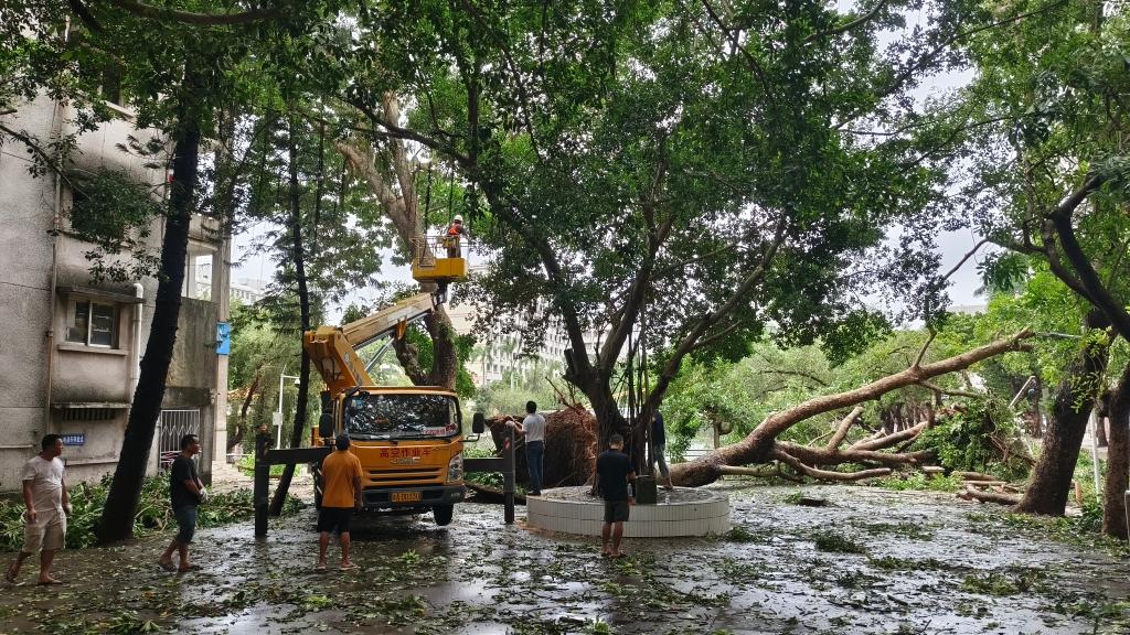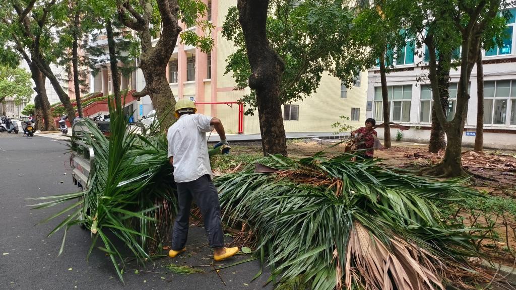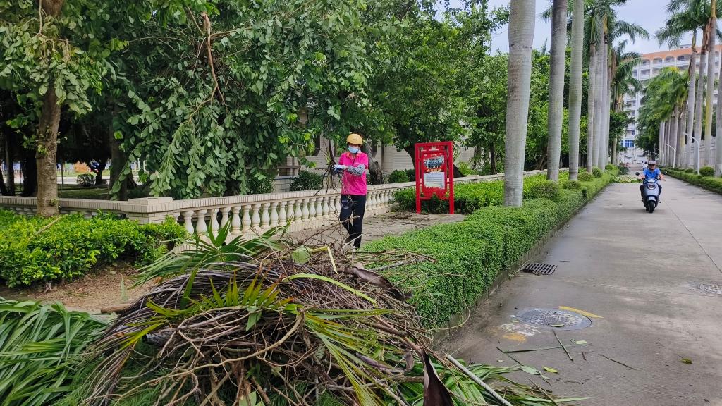 9月6日夜间,超强台风“摩羯”在湛江登陆,7日一早,相关部门工作人员已经在开展道路障碍和树木的清理工作,为校园道路保通保畅。据了解,学校无人员受伤和重大财产损失。