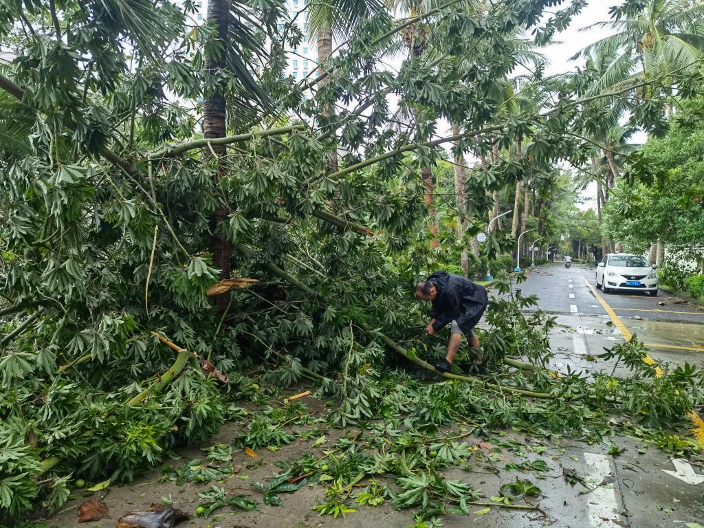 “昨晚台风最大时椰子树晃得很厉害,我感觉很新奇但是又很恐怖。”住在学生宿舍四栋五楼的学生来自东北,这是第一次经历台风,她表示宿舍早早准备好面包方便面等物资,水桶里也装满了备用生活用水,幸好并未用上。