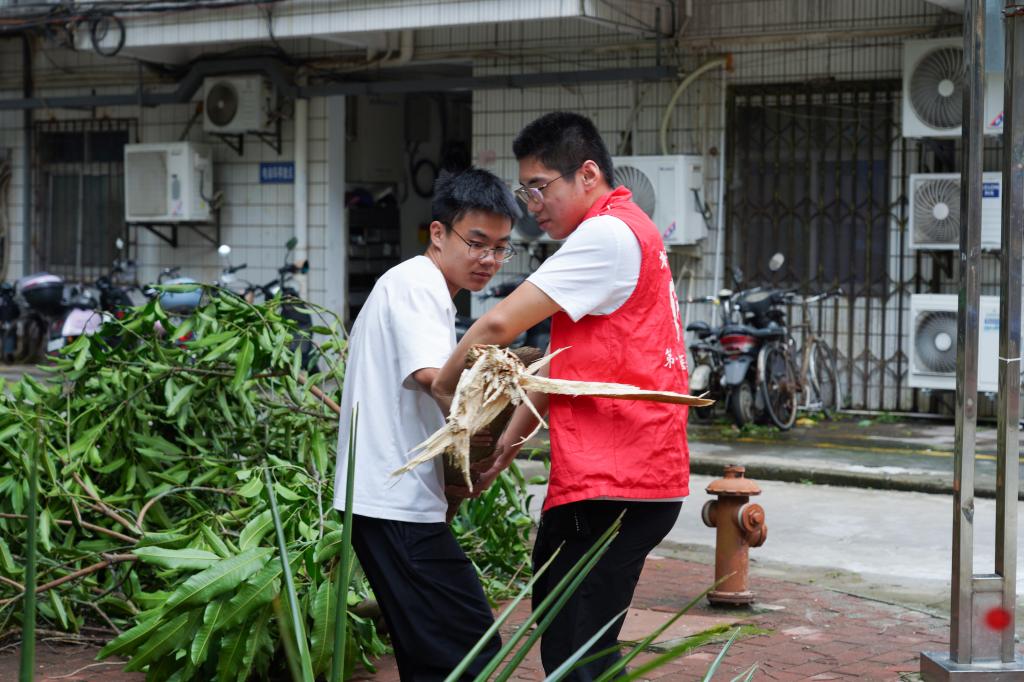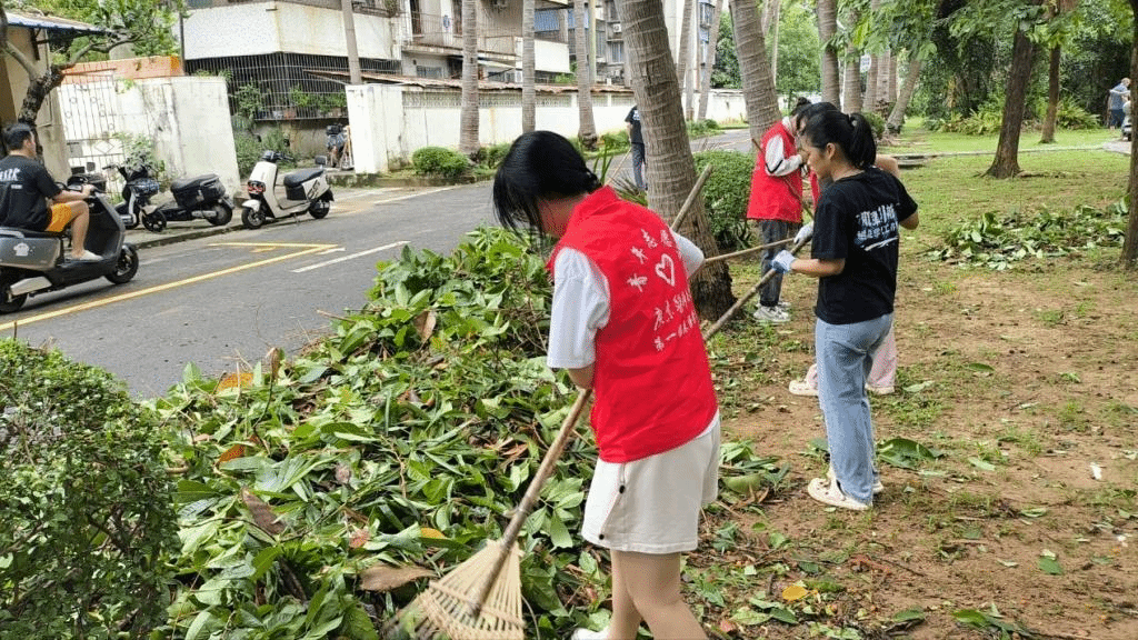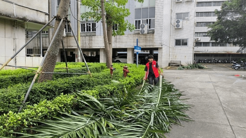 第一临床医学院包括新生、老生、退役大学生在内的70多名学生志愿者积极投入到校园清洁与恢复工作中,帮忙清扫落叶、清理积水、修复受损设施。23级临床医学专业的退役大学生林志泰同学表示:“听到台风咆哮了一晚上,感觉再大的树在‘摩羯’面前也像是蒲公英般脆弱。早上我们志愿者在校园各个角落帮着环卫阿姨一起完成这次校园清理,大家齐心协力众志成城,学校很快又恢复了原样。”新生志愿者宋佳说:“虽然天气还不太好,但是我看见了我们敬爱的老师,师兄师姐们在积极参加清理校园。他们的爱校热情和行动感染了我,鼓励我积极投身于校园志愿清理活动中,为学校贡献我的力量。”(文/周圆 冯锦山 林厚龄 张紫涵 图/冯锦山 黄禹诚 卢杏 刘望龙 毛华军 周圆 第一临床医学院 审核/冯锦山 复核/周圆 审发/裴金涛)
