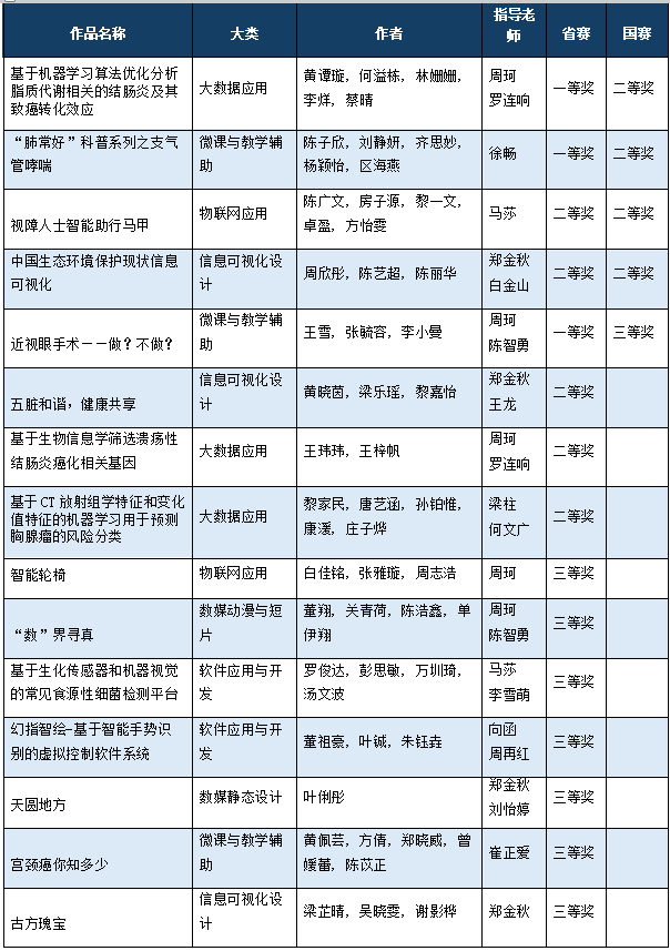 本次大赛与人工智能领域高质量发展、高层次人才培养相融相促、相得益彰,展示出优秀的成果,通过比赛促进学习和教学,为人工智能+专业的交流提供了重要的平台和机遇。bevictor伟德官网积极参与到比赛并斩获佳绩,进一步提高学校学生计算机教学和信息技术与学科深度融合的水平,激发广东医学子学习计算机知识和技能的兴趣和潜能,提升学生运用信息技术解决实际问题的综合实践能力。