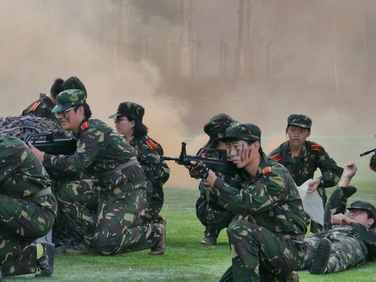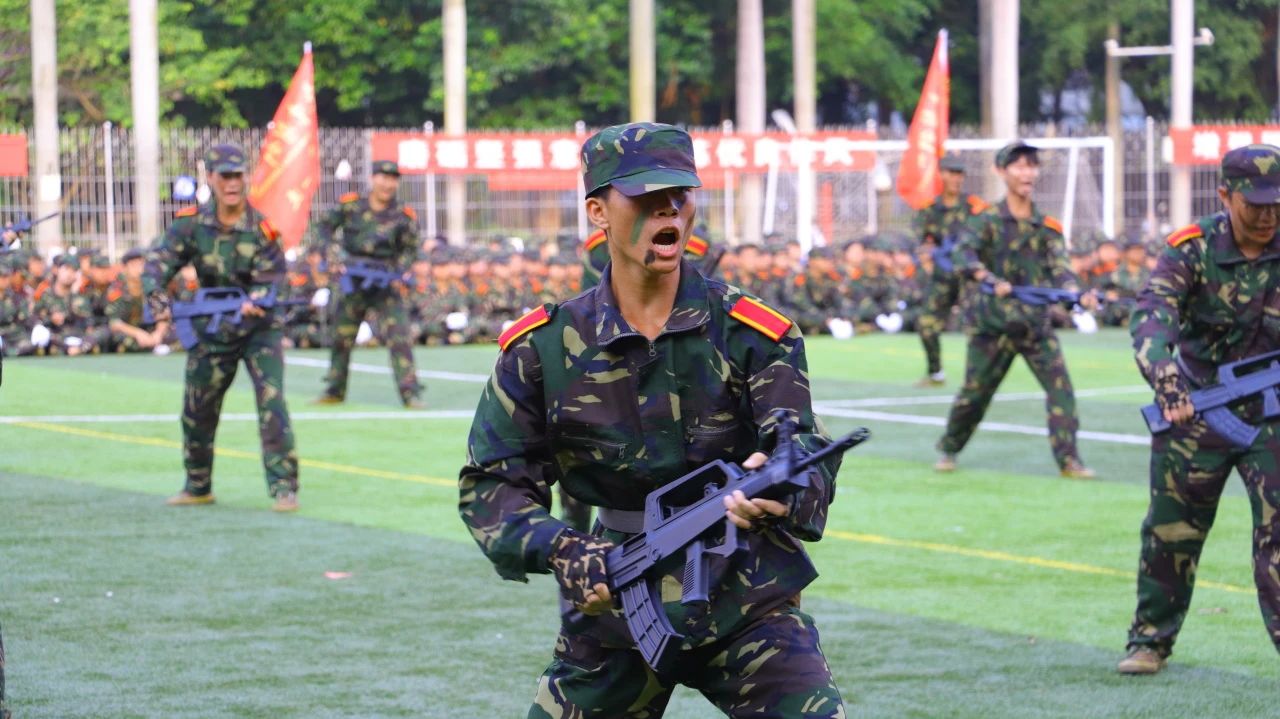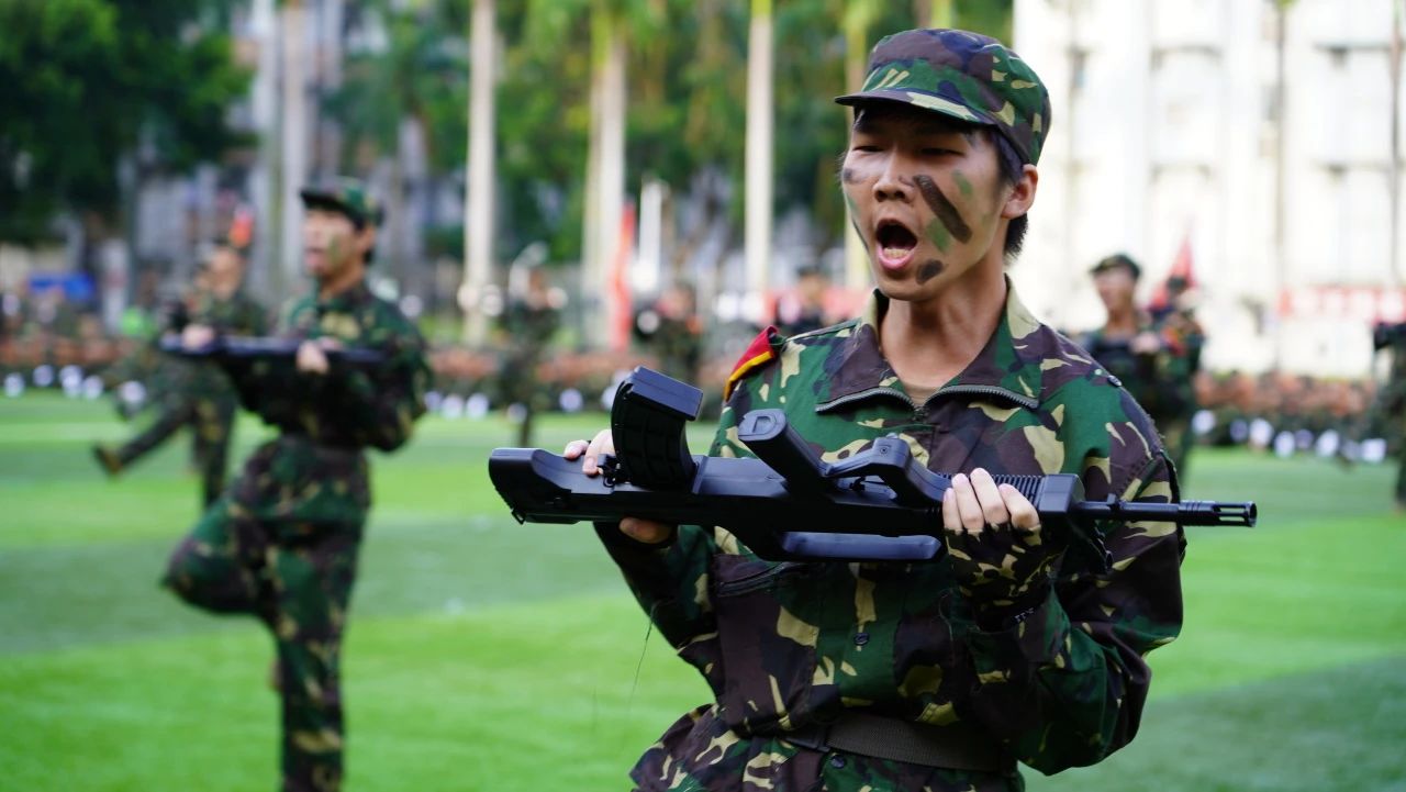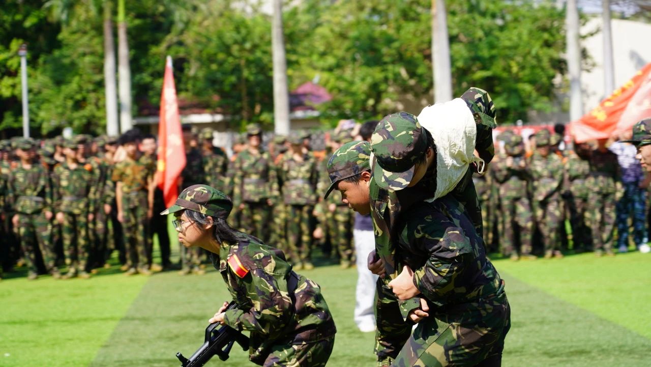 新生们身着整齐的军装,眼神坚毅,精神抖擞。在分列式表演中,他们英姿飒爽、挥斥方遒,以整齐划一的步伐和铿锵有力的口号,展现自信与刚强。军体拳、刺杀操等军事科目汇演更是赢得全场师生的阵阵掌声。战伤救护,止血、包扎、固定……手法娴熟,为伤员的抢救争取到宝贵的时间,展示了广东医学子学到的战场急救技能和合作能力。
