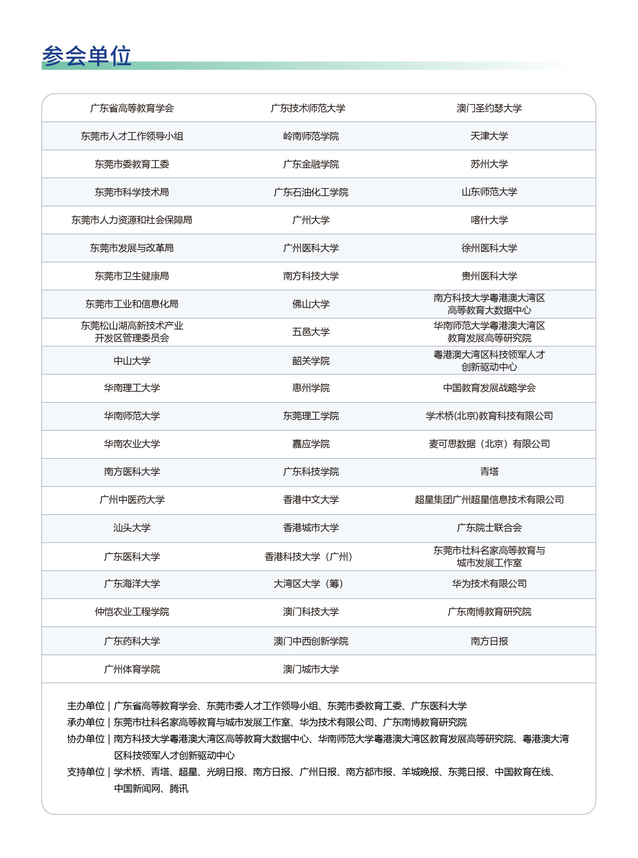 本次活动主要由东莞市社科名家曾志嵘高等教育与城市发展工作室、华为技术有限公司和广东南博教育研究院承办,除受邀前来的省内外40余家高校书记与校长、科研院所领导外,还有部分知名的第三方智库负责人和媒体代表。此外,参加大会的还有东莞市人大常委会党组书记、主任骆招群,东莞市委常委、bevictor伟德官网长武一婷,东莞市委常委、组织部长吕元元,东莞市委组织部常务副部长姚家庆,东莞社科联主席张卫红,东莞市委组织部、东莞市发展改革局、教育局、科技局、工业和信息化局、人力资源和社会保障局、卫生健康局等单位负责人,以及bevictor伟德官网全体中层干部和部分教师、学生代表。(文、图/bevictor伟德官网 初审/王丽君 复核/裴金涛 审发/杨海云)