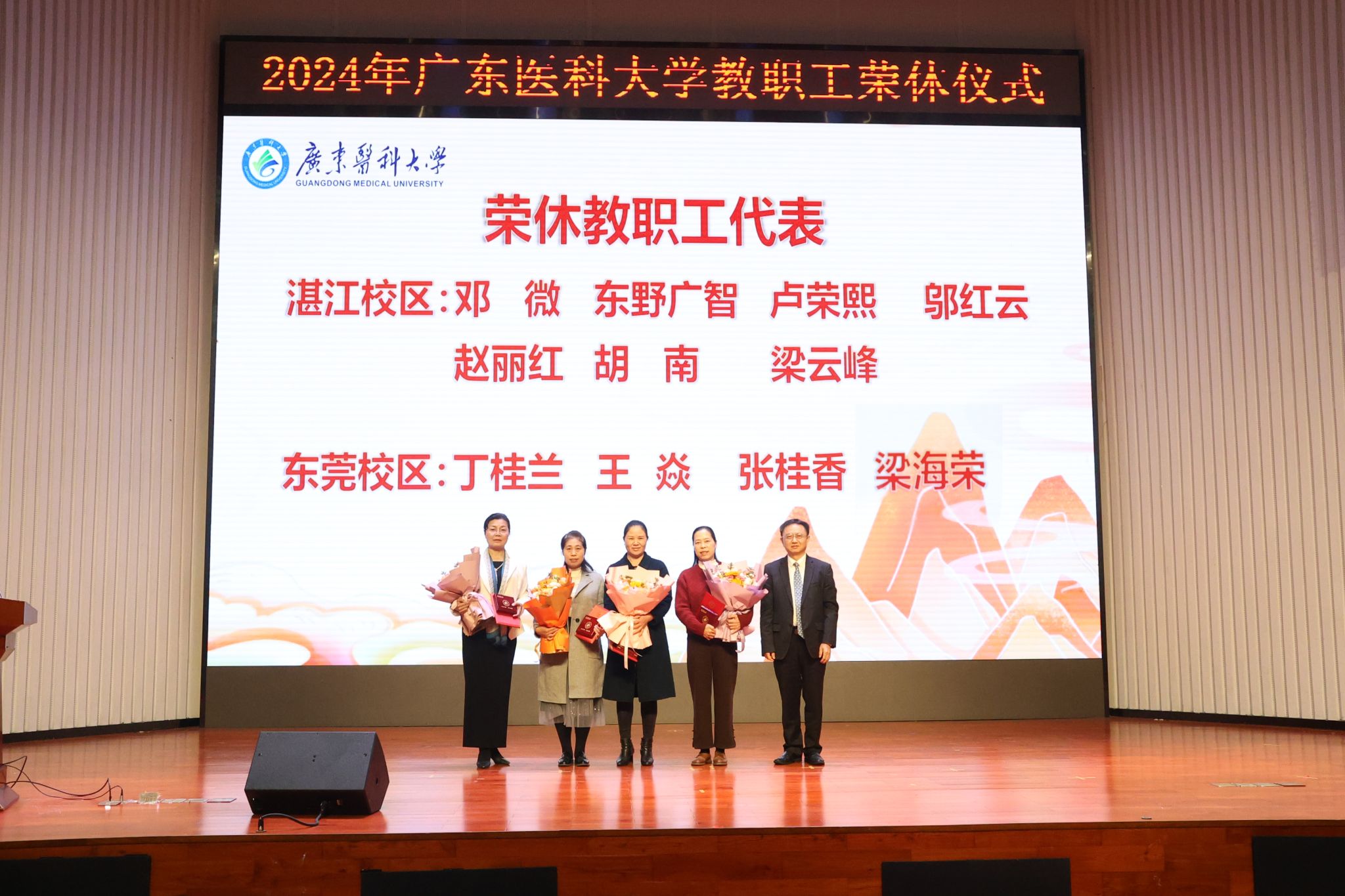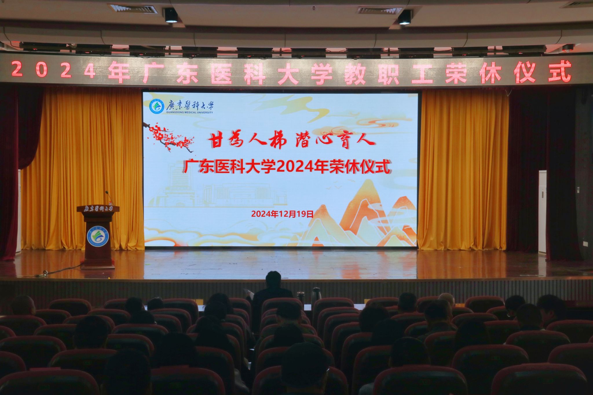 伴随着视频《特别的爱给特别的你》的播放,仪式缓缓拉开帷幕。画面中,从青丝到白发,每一帧都细腻地勾勒出往昔的青春时光,每一组镜头都忠实地记录下不懈奋斗的足迹。这温馨的视频,不仅深情回顾了荣休教职工与广东医同呼吸、共命运的深厚情谊与成长历程,还诚挚传达了他们荣休之际的感言以及对学校满怀深情的祝福。