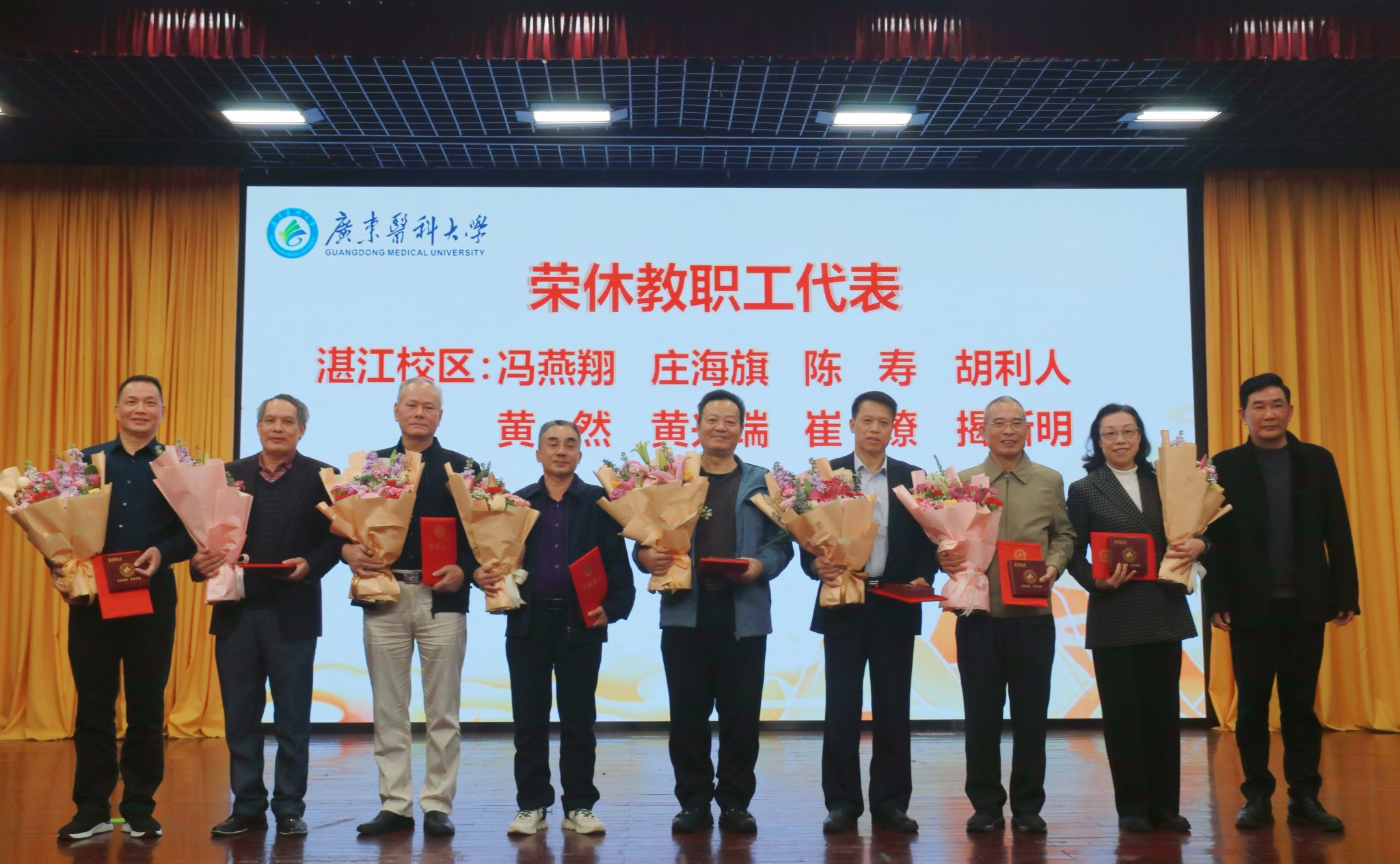 刘新光希望荣休教职工常回家看看,继续关注和支持学校的改革发展,继续发挥自身优势,发挥传帮带作用,继续做广东医师生的引路人、广东医故事的传播者、广东医精神的传承者。学校将继续做好荣休教职工的服务保障工作,积极搭建沟通桥梁,创造条件为荣休教职工多办实事,多解难事,多做好事。希望广大青年教师赓续广东医人的优良传统,焕发奋进力量,坚守立德树人初心,担当为党育人为国育才使命,发扬荣休教职工的高尚品格,传承教书育人的宝贵经验,努力培养更多德才兼备、担当民族复兴大任的时代新人。