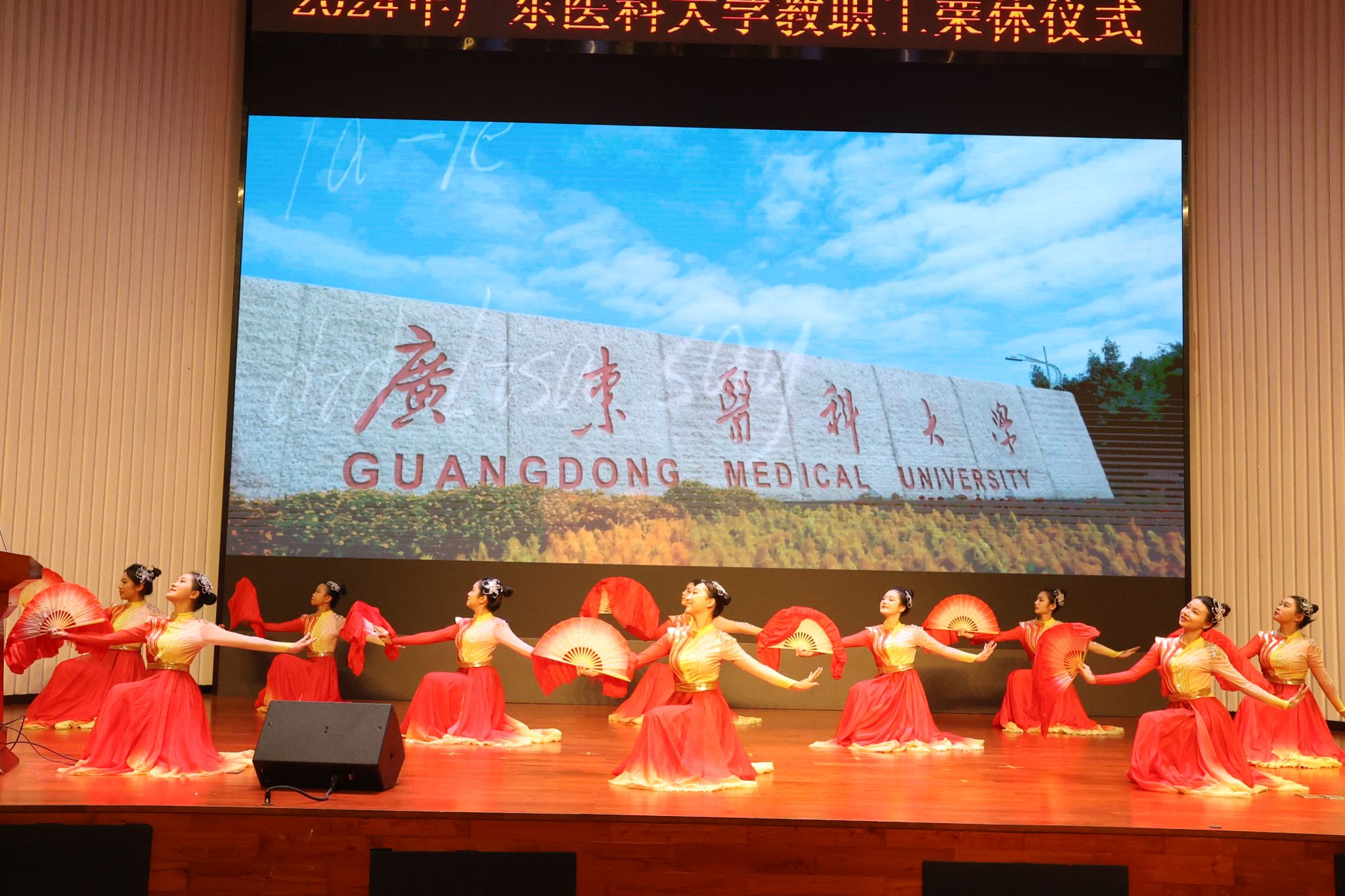 由庞雅文老师编导,大学生艺术团现代舞队带来了《万疆》的精彩表演,展现了中华大地的辽阔与壮美,也寓意着老教师们为医学教育事业所做出的贡献与无限情怀。