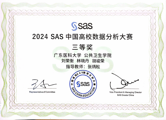 获奖团队立足公共卫生实际场景,运用SAS软件构建的“区域传染病智能预警模型”等创新成果获得评委会高度评价。获奖学生刘雨轩表示:“通过将课堂所学应用于疾病预测建模,我们深刻认识到生物统计学在公共卫生决策中的支撑作用”。