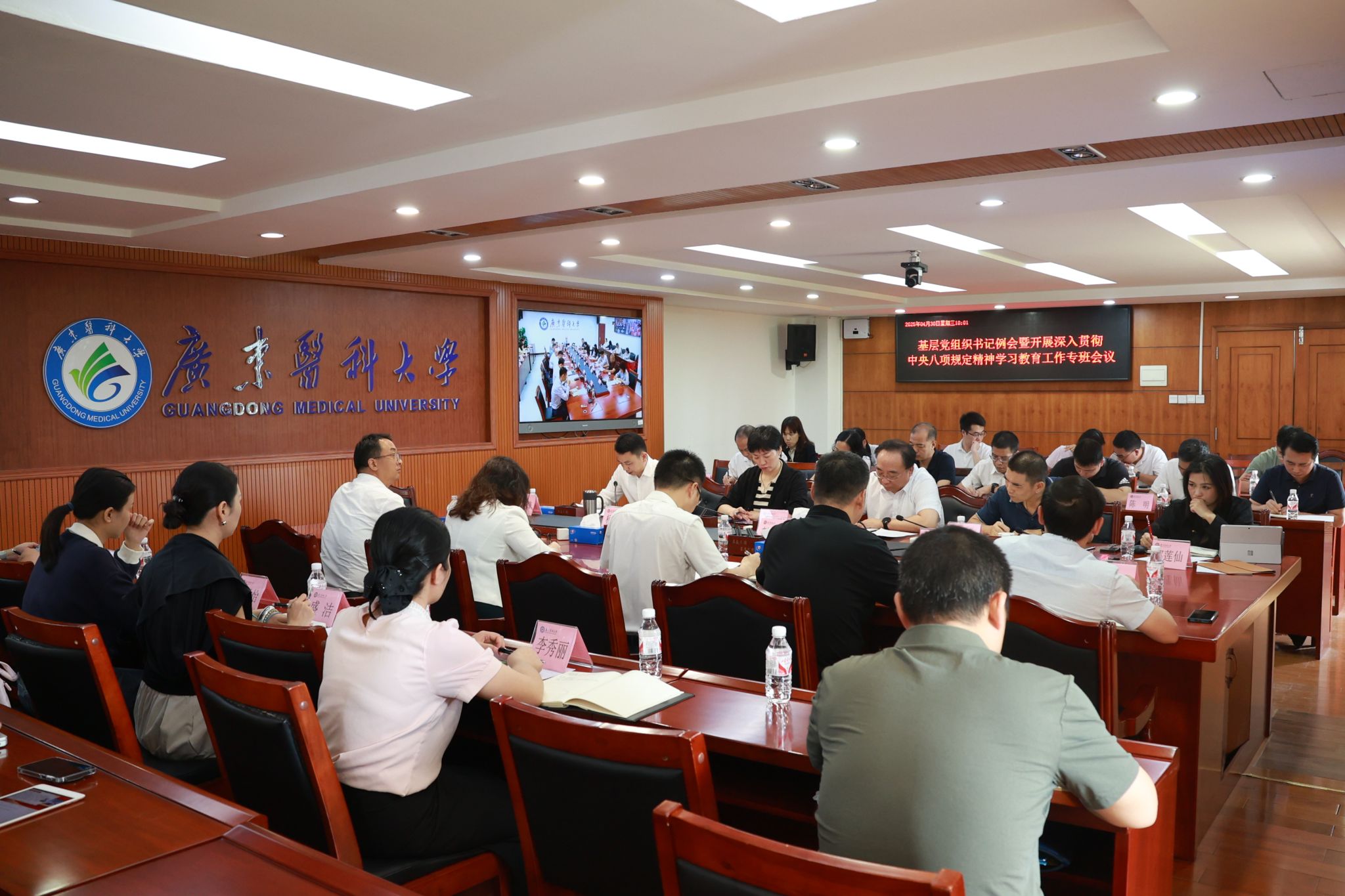 卢景辉传达了省委政策指导组视频调度会议精神,指出,开展深入贯彻中央八项规定精神学习教育是今年党建工作的重点任务,是学习贯彻习近平新时代中国特色社会主义思想主题教育和党纪学习教育的续篇,是驰而不息加强作风建设、纵深推进全面从严治党的重要举措,是推动学校各项事业健康发展的重要保障。全校各基层党组织要深入学习贯彻习近平总书记关于加强党的作风建设的重要论述,学习贯彻习近平总书记关于深入贯彻中央八项规定精神学习教育的重要讲话和重要指示精神,以更高站位扛牢政治担当,以更高标准落实重点任务,以更高要求抓好组织实施,推动学校学习教育取得实实在在的成效,不断汇聚建设高水平医科大学的强大合力。