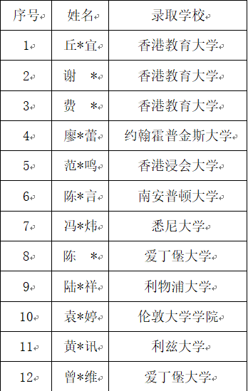 近日,外国语学院2025届毕业生境外留学捷报频传,共有12名优秀学子凭借扎实的语言功底、卓越的综合素养和突出的学术潜力,成功获得包括英国、澳大利亚、美国、中国香港等12所世界知名高校的录取通知书,实现高质量升学新突破。