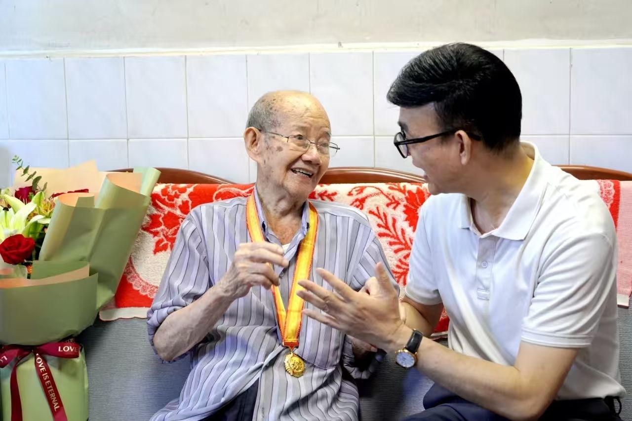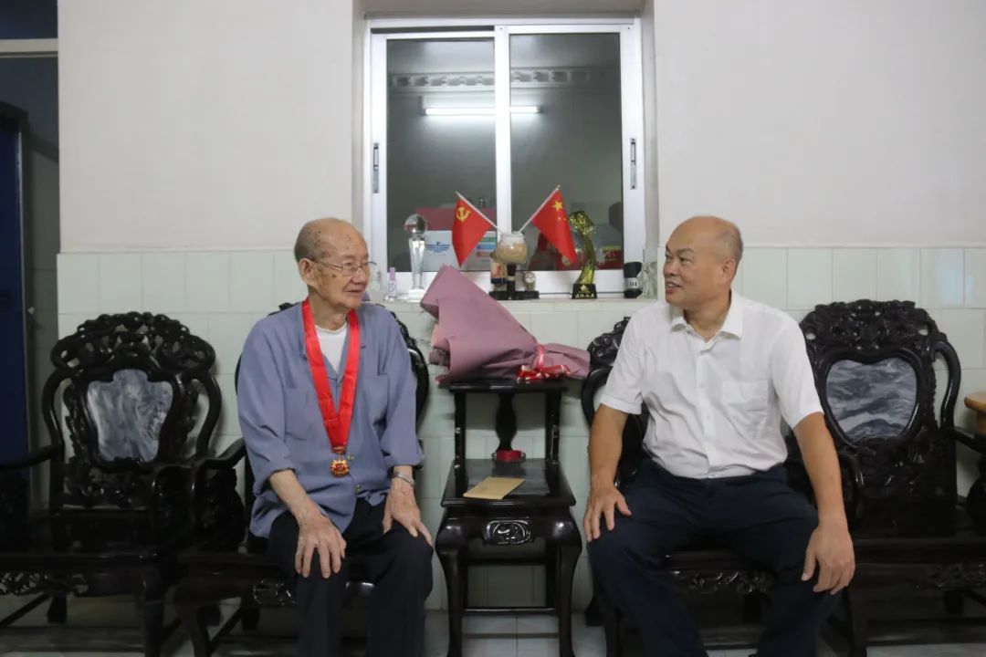 黄达海与罗国华亲切交谈,悉心询问他的术后康复情况和日常生活起居。99岁高龄的罗老虽近期连续接受了肾脏和心脏两次重大手术,但恢复情况良好,头脑清醒、思维敏捷,依旧保持着乐观豁达的精神状态。