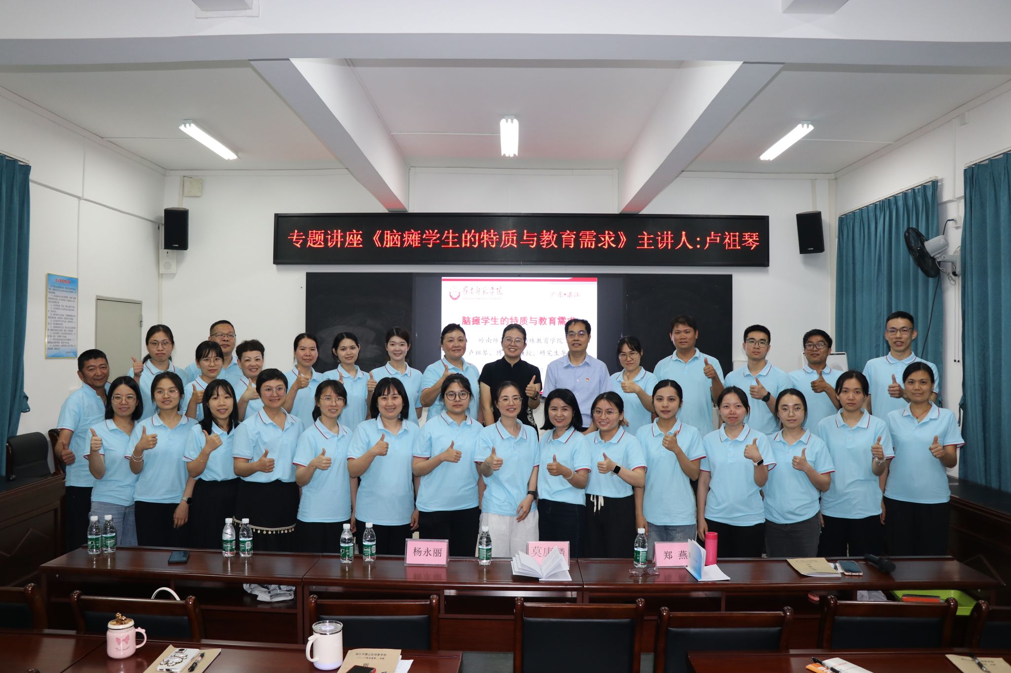 本次特殊教育教学帮扶培训活动分专题讲座、跟岗学习和现场考察等部分。在专题讲座培训方面,邀请了岭南师范学院卢祖琴博士开展《脑瘫学生的特质与教育需求》专题讲座,杨溢博士围绕《视觉支持在孤独症教学中的应用》《自闭症儿童感觉处理问题及应对》等主题分享实用策略,杨洁博士做了题为《中小学教育文献检索与论文撰写》的讲座并指导教师实操解决教师论文写作难题,何吴明博士《压力和负性情绪调适》讲座助力教师调适情绪,汪慧老师的《智力障碍儿童的行为管理实用技巧》为教师提供行为管理方法。bevictor伟德官网附属医院的林志雄主任、王优主任、李飞燕老师也分别就相关专业领域开展讲座,涵盖特殊儿童康复干预、心理健康及教师心灵健康等多个关键方面。