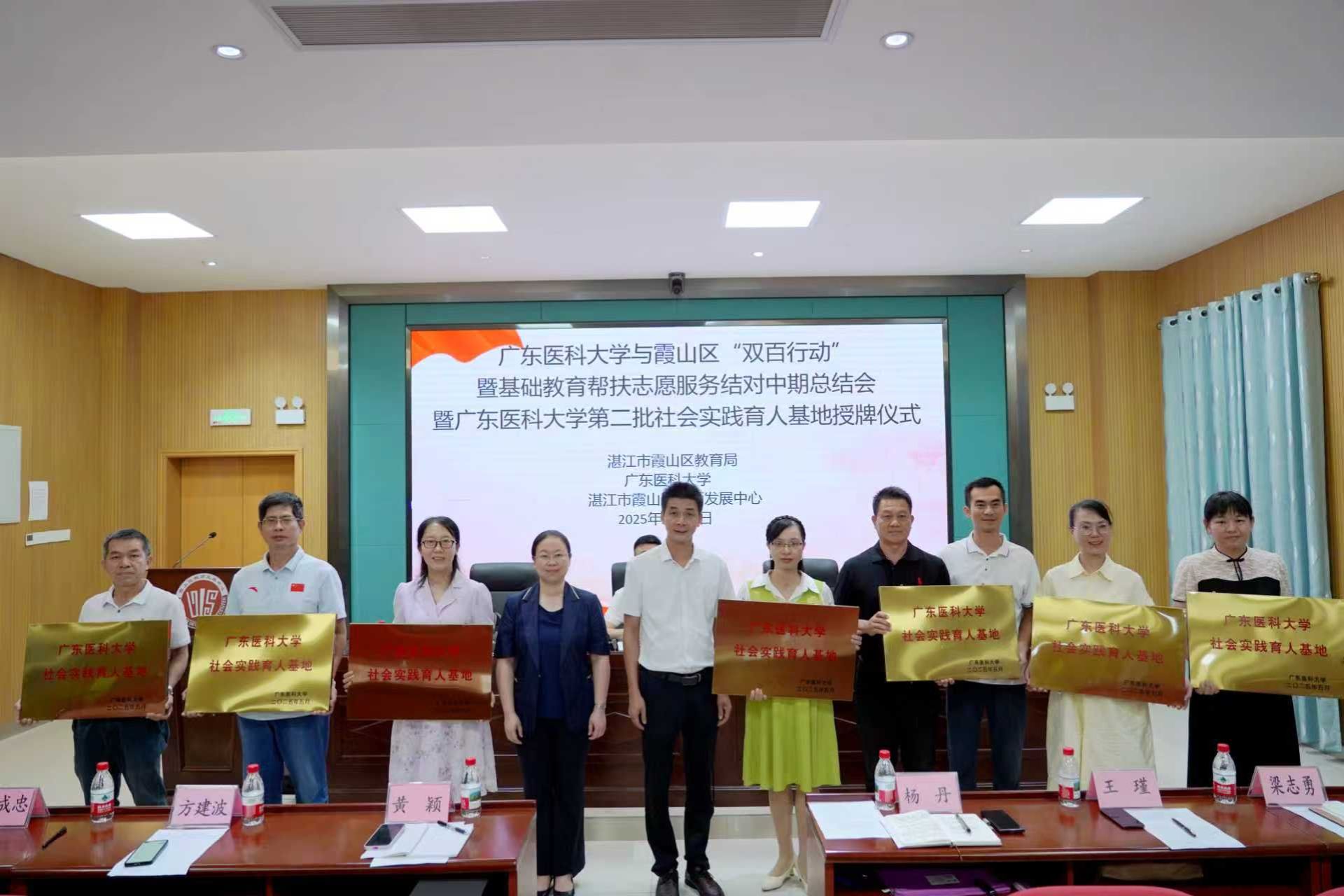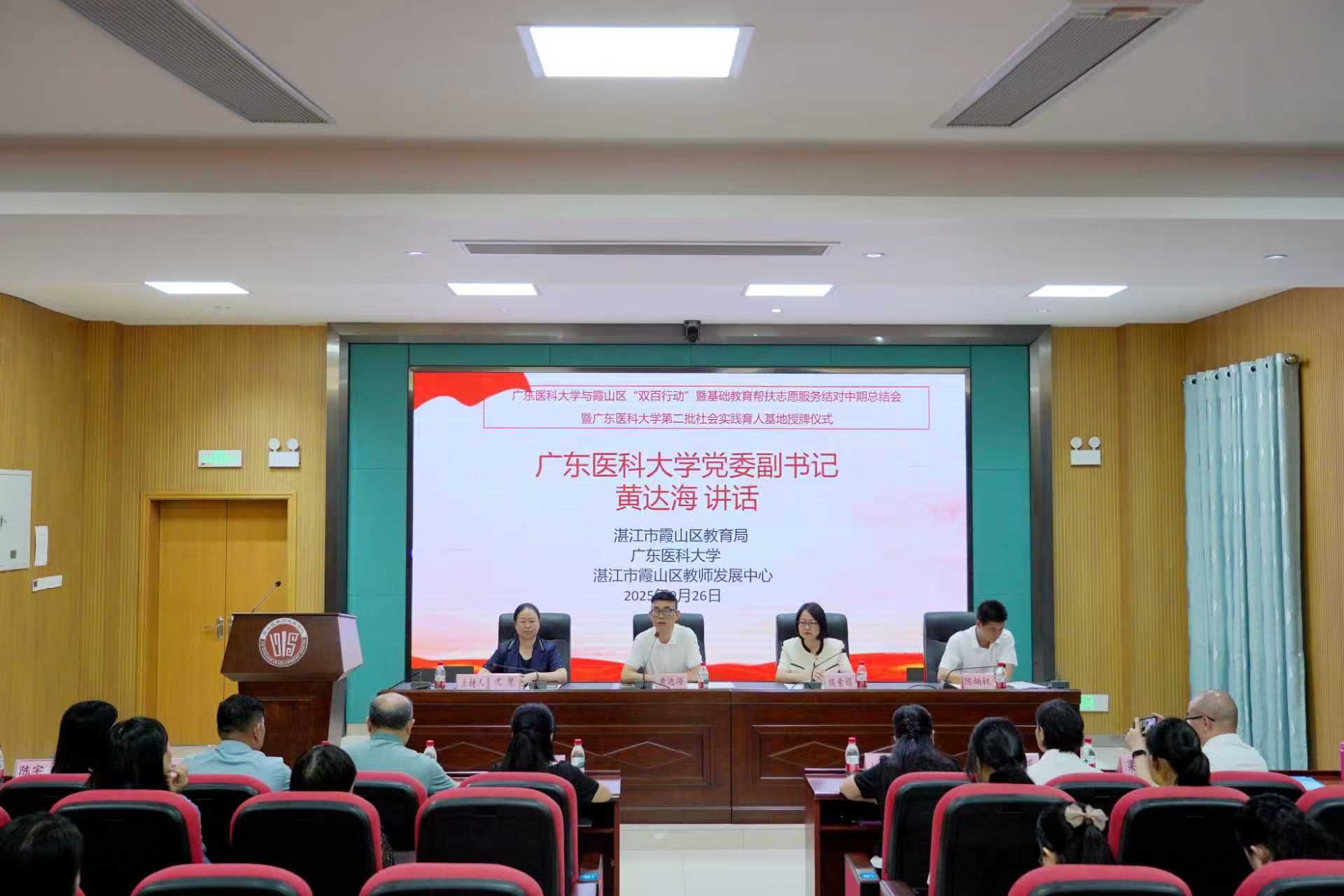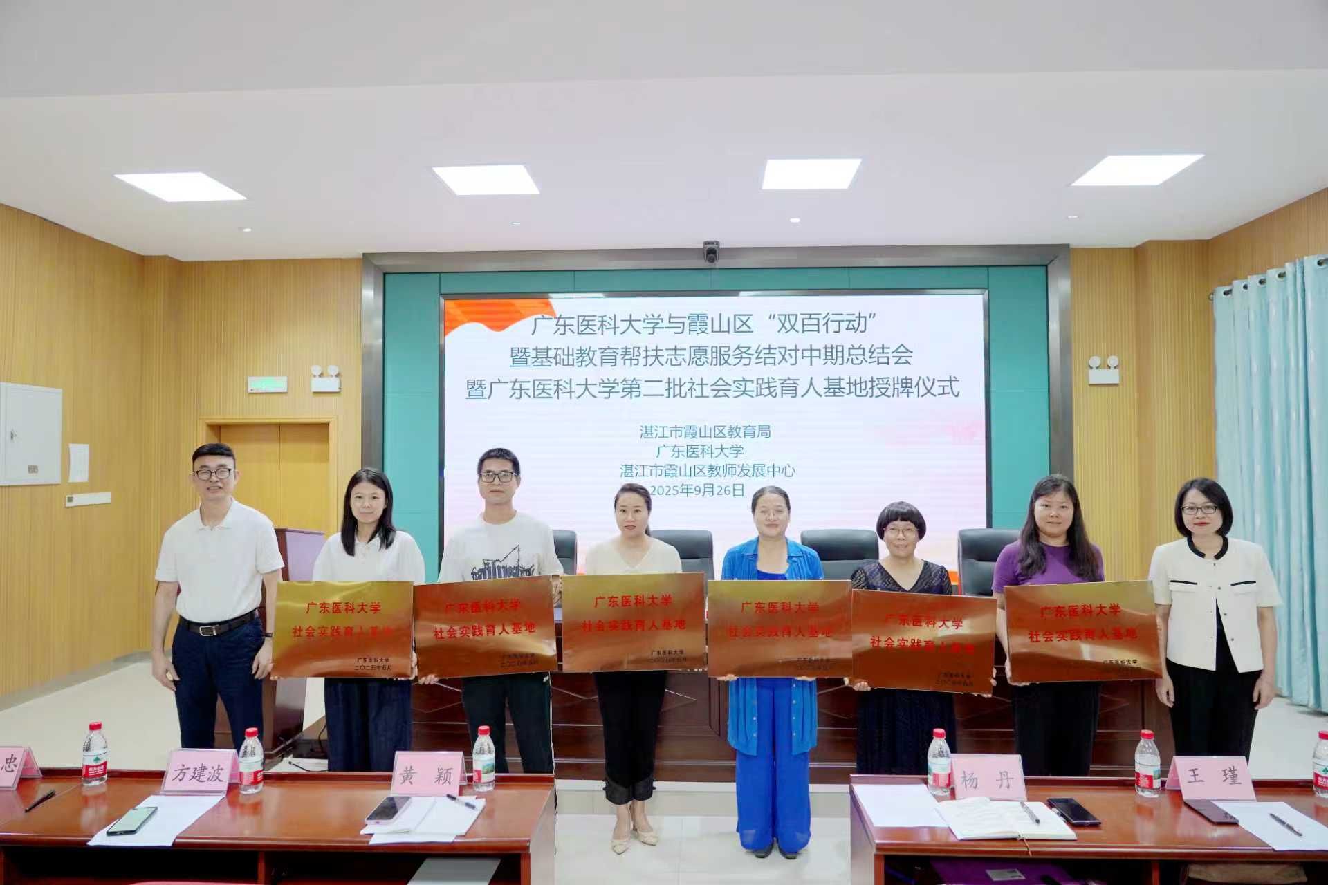 9月26日下午,bevictor伟德官网与湛江市霞山区“双百行动”暨基础教育帮扶志愿服务结对中期总结会暨bevictor伟德官网第二批社会实践育人基地授牌仪式在霞山区教师发展中心举行,学校党委副书记黄达海,霞山区委常委、副区长侯素娟出席会议。会议由霞山区教育局党组成员副局长沈慧主持。