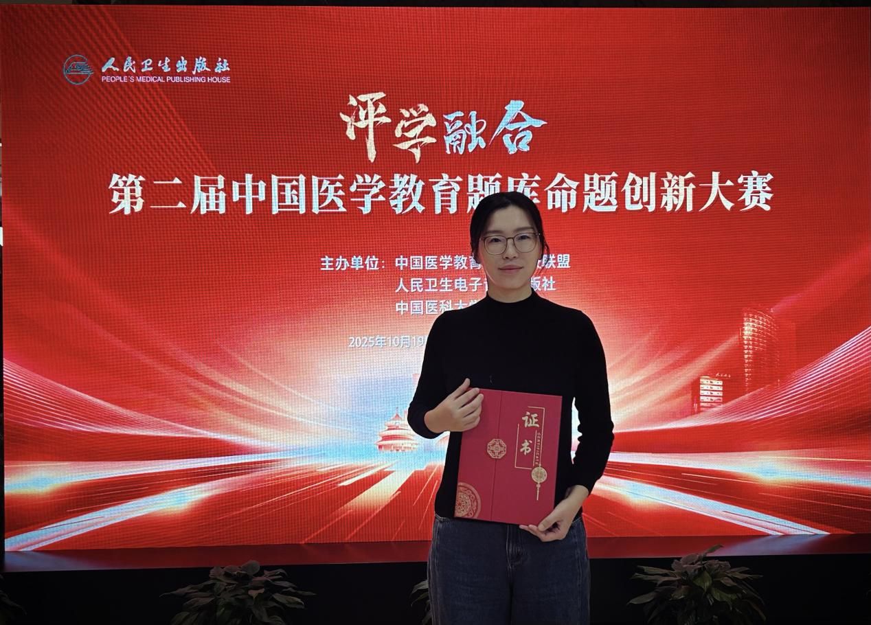 中国医学教育题库命题创新大赛是国内医学教育领域的高水平专业赛事,旨在引导广大医学教育工作者深入研究教学规律,创新命题理念与方法,全面提升医学人才培养质量。本次大赛的优异成绩,充分体现了我校教师卓越的教学水平、深厚的专业素养和积极的创新精神,也是学校长期坚持教育教学改革、注重师资队伍建设的成果体现。学校将继续以“评学融合”为理念,以命题创新与考试评价改革为重要抓手,全面推动医学教育育人方式、评价体系与管理机制的深度变革。通过“以赛促教、以赛助学、以赛促改”,持续提升教育教学质量,为深化医学教育改革、培养高质量医学人才贡献新的力量。(文、图/马媛媛 审核/周艳芳 复核/周圆 审发/裴金涛)