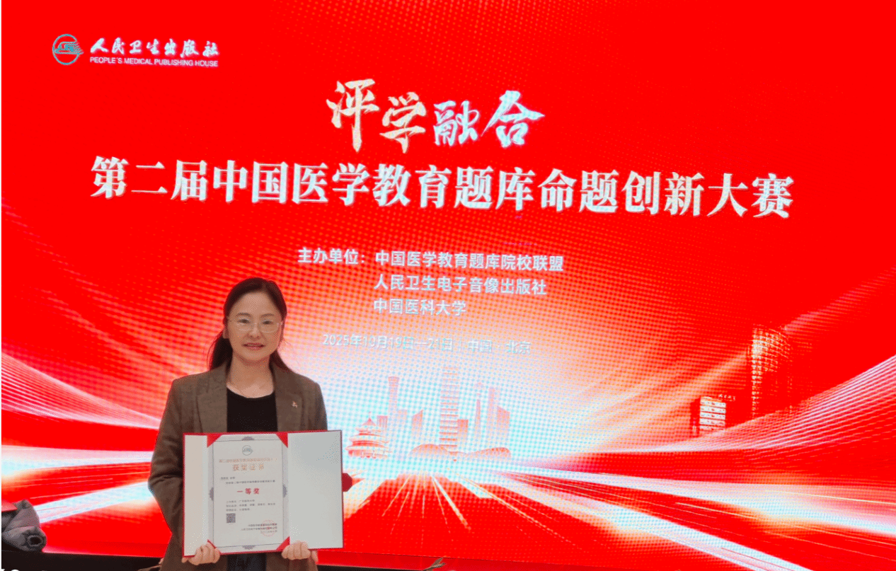 10月19日至21日,第二届中国医学教育题库命题创新大赛在北京隆重举行。大赛以“评学融合——深化医学教育评价改革,全面提高医学人才培养质量”为主题,汇聚来自全国63所医学院校的252支参赛团队、1128名骨干教师共同竞技。经过“网络初审+现场决赛”的严格评审,最终100支队伍晋级全国赛现场决赛。我校参赛教师团队凭借扎实的学术功底、严谨的教学态度与突出的命题创新能力脱颖而出,斩获一等奖1项、二等奖1项、三等奖2项,学校获“优秀组织奖”。