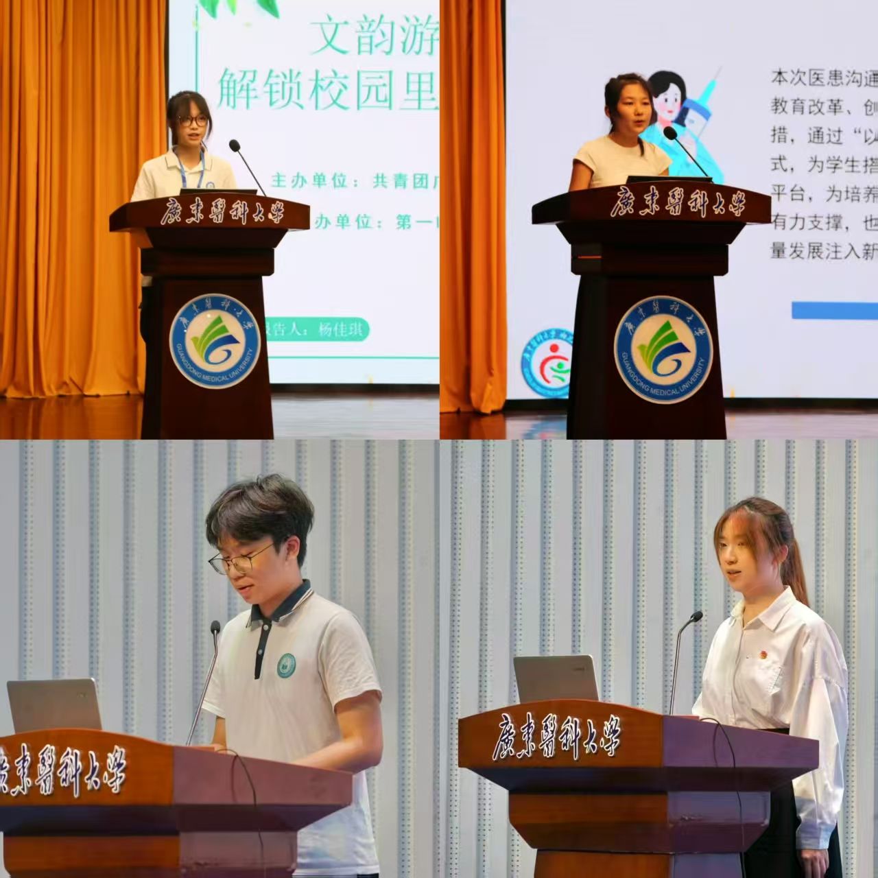 校团委书记陈炳权从创新、专业、学术、人文四个角度详细介绍了本届“双节”立项40个项目的情况,覆盖科技、文化、阅读等多个领域,形式新颖且参与面广。其中,第一临床医学院的“文韵游园集”、妇儿医学院的医患沟通技能比赛、生物医学工程学院的AI形象设计大赛,以及校学生会的“一书一签・阅见美好”等四个新项目进行了现场推介,这些既贴合校园需求,又融合了创意与人文、科技元素,让在场师生充满期待。