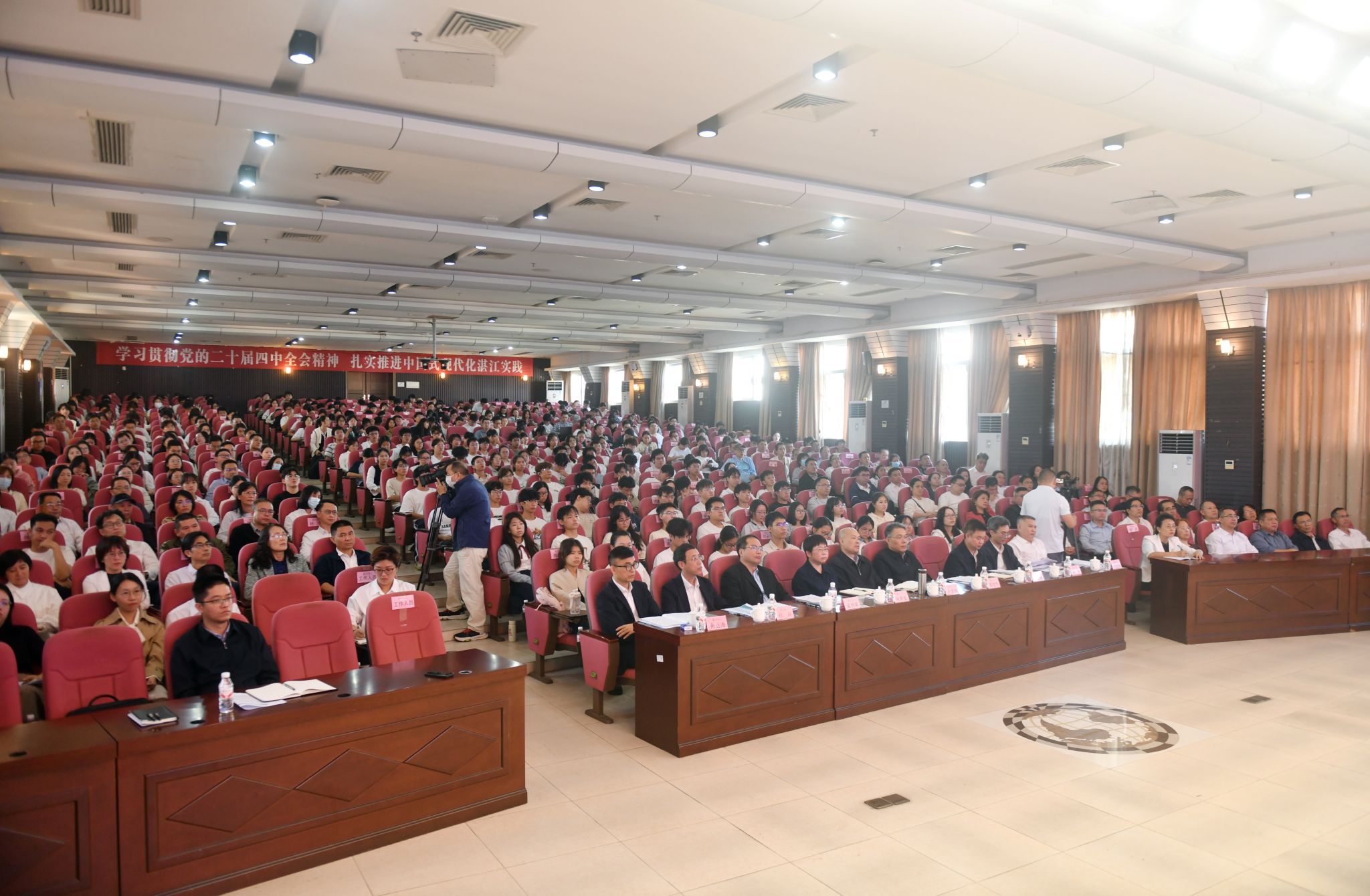 12月11日,在深入学习贯彻党的二十届四中全会精神、学习贯彻习近平总书记视察广东和出席第十五届全国运动会开幕式重要讲话重要指示精神、谋划“十五五”事业发展之际,湛江市委书记余钢莅临学校为全校师生讲授题为《学习贯彻党的二十届四中全会精神,扎实推进中国式现代化湛江实践》专题思政课。学校党委书记、校长卢景辉主持思政课。