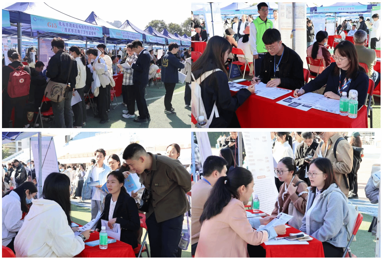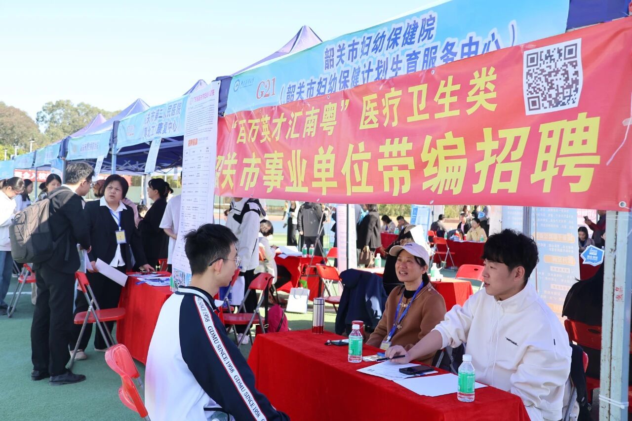 招聘会现场用人单位抢人竞争也激烈。东莞市卫生健康局、韶关市卫生健康局、茂南区卫生健康局等150多家单位诚意满满,毕业生“福利”多多,“免笔试”“即时编制”“安家费”等“诱惑”让广大毕业生应接不暇。其中粤北人民医院为硕士提供5 万、博士提供超 50的安家费 ,茂名市电白区中医院博士购房补贴 30 万、硕士购房补贴 15 万,不购房则月补500元—1000 元不等。进入岗位后,医院还会安排有经验的医生“带教”,帮助其尽快适应工作,还会有针对性的安排新入职工作人员进行业务学习和培训,帮助其业务能力成长。“连续多年来校招聘,广东医的毕业生好用。”多地卫生健康局的工作人员对广东医的毕业生赞不绝口。