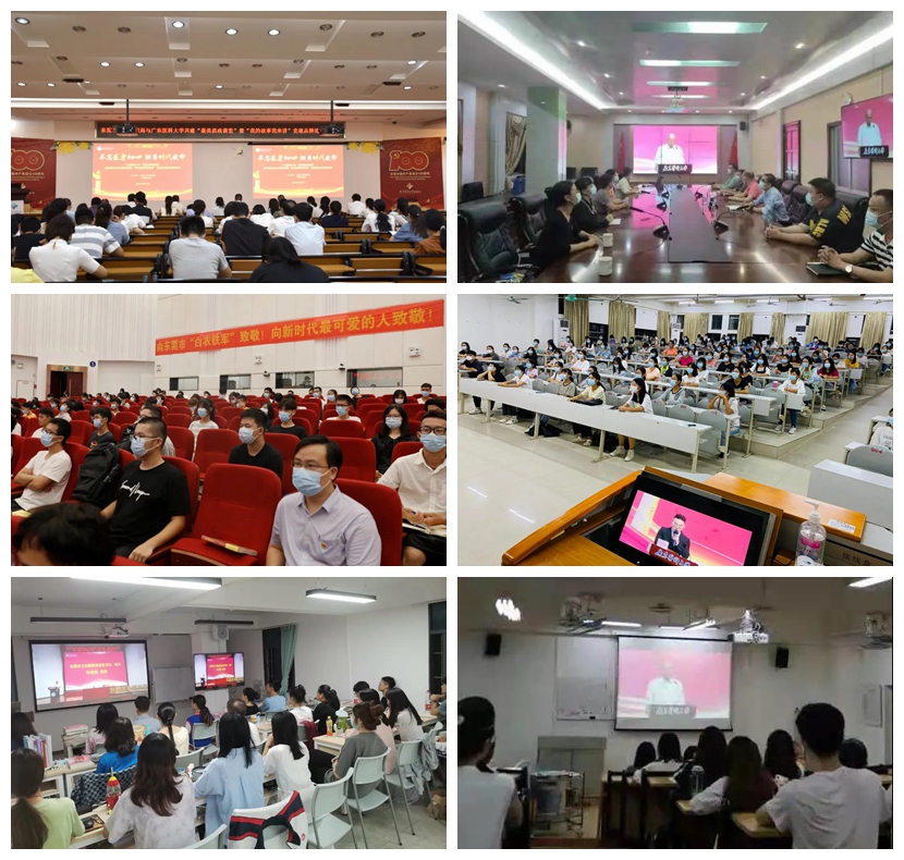 2021年10月15日晚,东莞市卫生健康局与bevictor伟德官网共建“最美思政课堂”暨“我的故事我来讲”党建品牌进校园活动中,东莞市6位“最美医生”“最美护士”代表以生动故事构成的“最美思政课堂”,令bevictor伟德官网全体师生和医护员工深受触动,现场35次掌声凝聚了师生们的敬意。一万多名在校师生在各分会场,实习点学生、专升本学生在各教学点,7所附属医疗单位的医护员工在本单位收听收看。