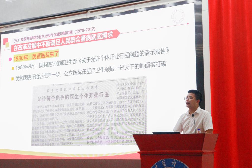 这场一个半小时的专题思政课,干货满满、正能量充足。曾志嵘副校长以《学习党领导卫生事业发展的奋斗历史经验,践行为党育人为国育才的根本使命》的主题,详细介绍了中国共产党在四个历史发展时期领导卫生健康事业发展的历程和十条宝贵的经验,阐述了广东医赓续红色基因、为党育人的历史底蕴,介绍了“五术”医学人才的培养计划,诠释了学校“为党育人、为国育才”的使命担当、落实立德树人的成效和全员育人的责任,培养担当时代复兴新人的举措和实践。