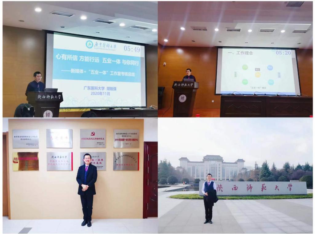 胡勉强工作室即“新媒体+五业一体”工作室(五业:学业、专业、就业、职业、事业)是广东省教育厅指导、教育部高校思想政治教育骨干队伍培训中心2019年立项建设的广东高校骨干辅导员工作室,2020年11月考核优秀并成为“建设对象”。2019年11月,“五业一体”易班YOOC翻转课堂工作室获第一批广东高校网络文化示范工作室重点培育项目立项,2021年12月顺利结项。工作室充分依托公共卫生学院和学校学生发展与支持中心,建设“五业一体”职业生涯咨询特色工作室,取得良好成效,推荐为广东高校职业生涯咨询特色工作室。实施“一师一班一友一传承”项目,进行了大学生“学业、专业、就业、职业、事业”的实证研究和实践示范。工作室的成果成功地支撑了卫生检验与检疫、预防医学国家级和统计学省级一流专业等4项省级、2项校级教学成果奖申报。
