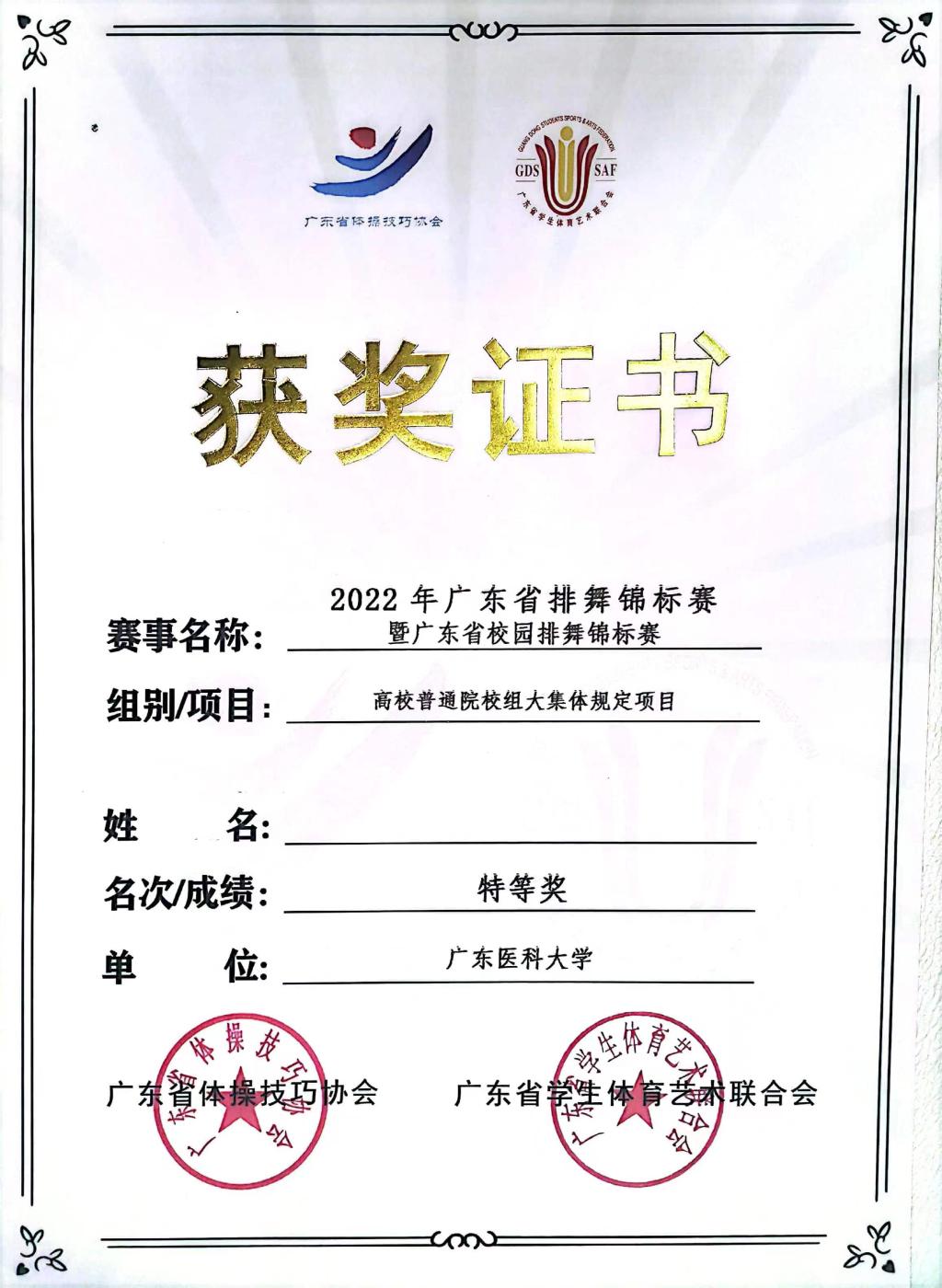 获奖证书