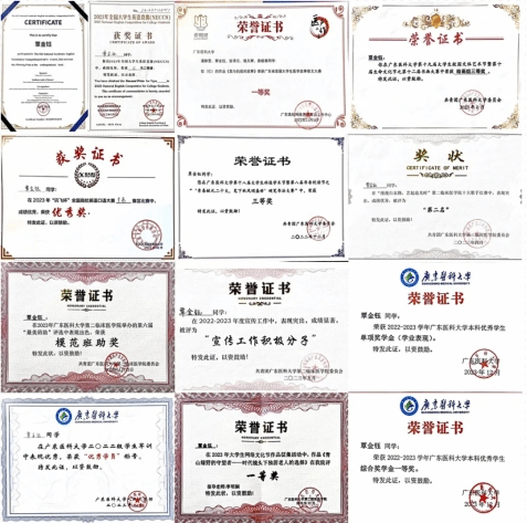 覃金钰在学好学业的同时,努力精进本领,拓展自己视野,力求成为一个全面发展的医学生。她对英语学习充满热情。她说,很多科技创新成果来自英语国家,学好英语,就找到了一条通向世界的通道。苦学英语,让她收获很多,曾获得全国大学生英语竞赛二等奖、广东省第十届联盟杯本科高校英语写作大赛大学英语组二等奖等荣誉。