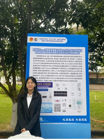 科研路并不平坦,秦静潼也常常会有挫败的时刻。这时候,她就会转移注意力,“先恢复良好的精神状态再攻克难题”。对她来说,这不仅是她在科研路上总能保持良好心态的关键,同时也是保持学习热情的一大原因。正因此,她的项目《ALOX15/PEBP1介导的铁死亡在哮喘中的作用和机制研究》获省级立项,也是湛江校区唯一的重点项目。同时她在2022年挑战杯,第九届全国基础实验论坛设计大赛,临床技能大赛等多项重要科研比赛中皆获佳绩。