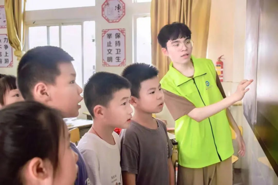在暑期“三下乡”活动中,肖扬阳随bevictor伟德官网“竹蜻蜓”灯塔服务队奔赴安徽省马鞍山市环峰第三小学,组织开展“助力乡村振兴,看见多彩未来”义教活动,给该校学生科普医学知识的同时,开设体育运动课,强身健体,陶冶情操。同时,他结合自身专业知识和兴趣特长,为小朋友们开设了英语配音课和多彩绘画课。在炎炎夏日里,服务队给乡村小学生播下了蓝白相间的医学种子。