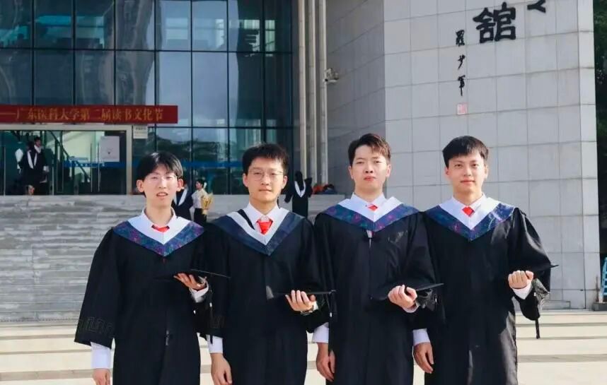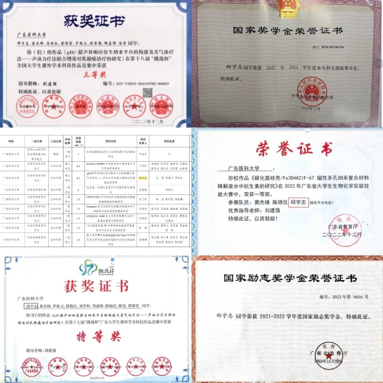宿舍坚持“学习共同体”建设,张克鑫建立外科学习小组,邱宇志担任学业导生,四人定期开展病例讨论、文献分享。他们包揽国家奖学金、校长奖学金等荣誉30余项,全员以优异成绩分别考研上岸南方医科大学、中山大学等名校。科研创新成果尤为亮眼,张克鑫参与发明专利1项,邱宇志主持省级“攀登计划”重点项目,其乳腺癌新辅助治疗研究获“挑战杯”国赛三等奖以及广东赛区特等奖;孙雨晨深耕基础医学研究,李向东在临床数据分析领域崭露头角。